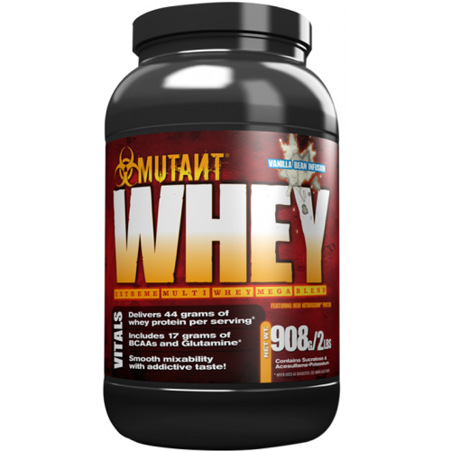 Mutant Whey – мощнейший коктейль из концентрата и изолята сывороточного протеина, обогащённого глютамином и аминокислотами BCAA. Этот протеиновый комплекс способствует созданию положительного азотистого баланса, что стимулирует рост мышечной массы и позволяет быстрее восстановиться.