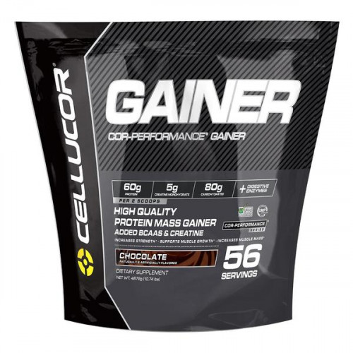 "Cellucor Cor-Performance Gainer это высококачественный гейнер способствующий качественному приросту мышечной массы, так как содержит (на порцию) среднее количество калорий, белков и углеводов, обладает стандартными вкусами: шоколад, ваниль, клубника.