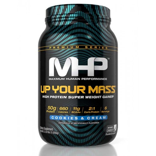 Up Your Mass от MHP — гейнер с низким гликемическим индексом. Лучший среднекалорийный гейнер на всем рынке спортивного питания. Безоговорочный лидер по многим показателям, в том числе по соотношению цены к качеству. Систематичный прием добавки способствует полноценному восстановлению энергетического баланса, что в свою очередь ведет к стабильному росту массы тела за счет восстановления и сверхвосстановления мышечных волокон. Содержит углеводную смесь (ячмень, овес), казеинат натрия, соевый протеиновый изолят, сывороточный концентрат, казеинат кальция, клетчатку, витаминный комплекс, глютамин и BCAA, а также смесь жирных кислот.