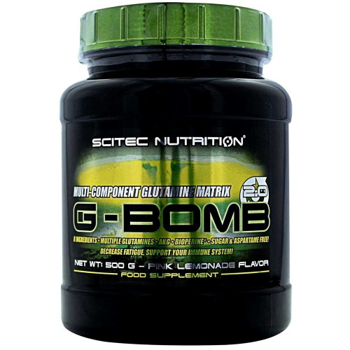 G-Bomb от Scitec Nutrition – глютаминовая бомба в порошке. Глютамин одна из важнейших аминокислот составляющая почти 60% содержания в мышцах имеет важное значение для поддержки иммунитета и состояния здоровья.