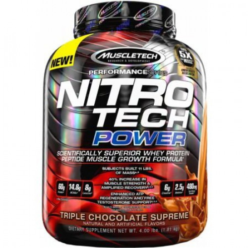 "Каждый совок Nitro-Tech POWER содержит 30 г белка, в основном из пептидов молочной сыворотки, которые имеют несколько преимуществ по сравнению с другими формами белка. Во-первых, они быстро поглощают с наивысшей биологической ценностью ваше тело может легко ассимилировать аминокислоты из белка, чтобы увеличивать миофибрилы мышц. Это делает Nitro-Tech POWER идеальным выбором в качестве белка после тренировки и для зажигания синтеза белка мышц в любое время дня.