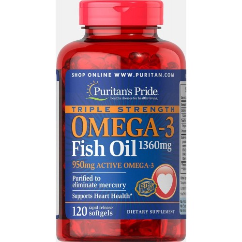Комплекс незаменимых жирных кислот Puritan's Pride Omega 3 Triple Strength 1360 мг 120 капсул