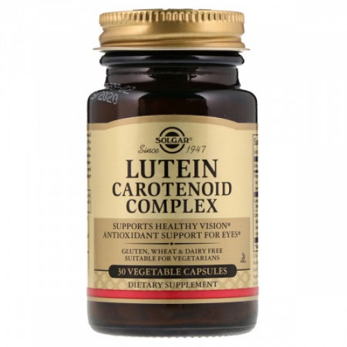 Комплекс для поддержки зрения от Solgar содержит большое количество бета-каротина (витамин А), а также лютеина и каротиноидов. Лютеин поддерживает здоровую функцию глаз и улучшает остроту зрения. Этот микроэлемент является основным каротиноидом, обнаруженным у людей. Он высоко концентрирован в сетчатке глаза. Лютеин работает синергетически, чтобы улучшить здоровье глаз. Он также является мощным нейтрализатором свободных радикалов, которые вносят вклад в спектр антиоксидантной защиты организма.