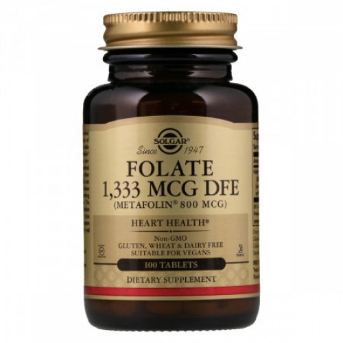 Препарат для поддержки иммунной и кровеносной систем Solgar Folate 666 мкг DFE Metafolin 800 мкг 100 таблеток